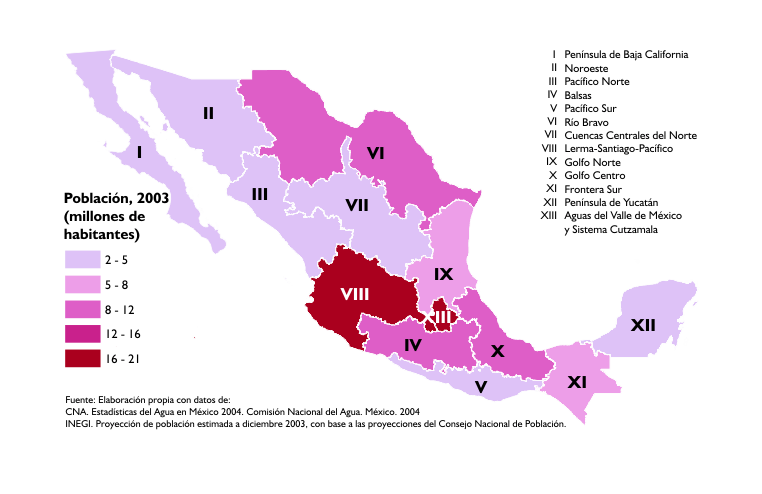 Población por región hidrológica administrativa, 2003