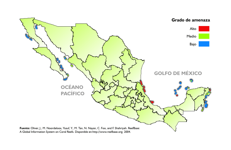 Información complementaria IC 6.3.1-4 A Blanqueamiento de coral en arrecifes mexicanos según litoral y grado de severidad,1990-2003