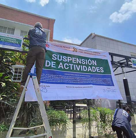 Trabajos constatados: Se sobservó una plaza comercial denominada "La Comer" constatando la instalación de diversas estructuras metálicas desplantadas al exterior de los locales comerciales.