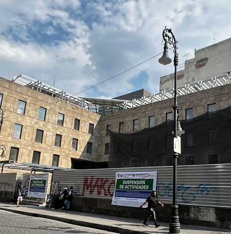 Trabajos constatados: Inmueble tipo esquinero de 4 niveles de altura, en el que se realizan los trabajos de conservación, reestructuración, rehabilitación, y adecuación al interior, así como la ampliación sobre el nivel de azotea; también se realizó la habitación de una estructura a base de perfiles y vigas metálicas en el área libre del predio.